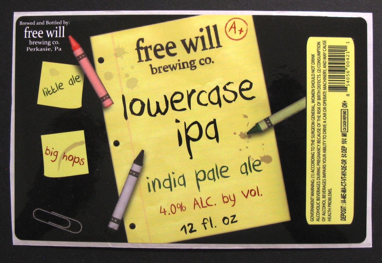 Free Will Brewing Co Lowercase Ipa Beer Label Pa 12oz Sticker Ebay